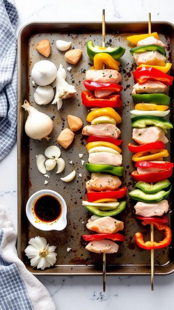 Using wooden skewers that have been soaked in water helps prevent burning during grilling. A combination of colors not only enhances the presentation but also offers a balance of flavors with every bite.