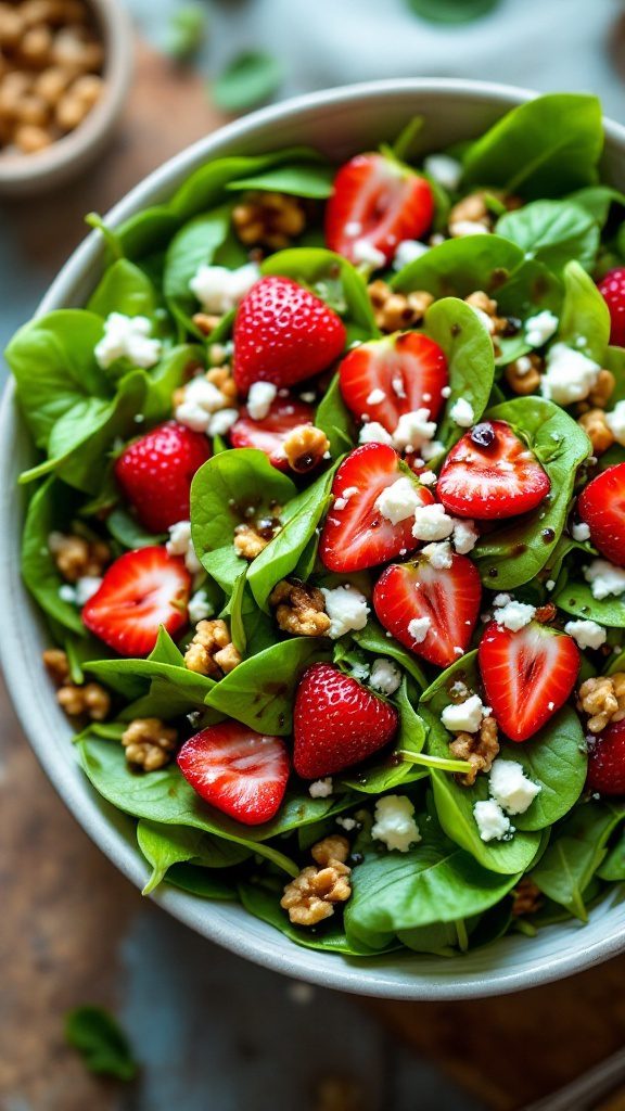 This salad features a wonderful balance of flavors and textures. The sweetness of the strawberries contrasts nicely with the tangy feta cheese, while walnuts provide a satisfying crunch. A drizzle of balsamic vinaigrette ties everything together, enhancing the salad’s freshness and zing. Each bite is a celebration of spring’s bounty, making it an ideal choice for gatherings or meal prep.